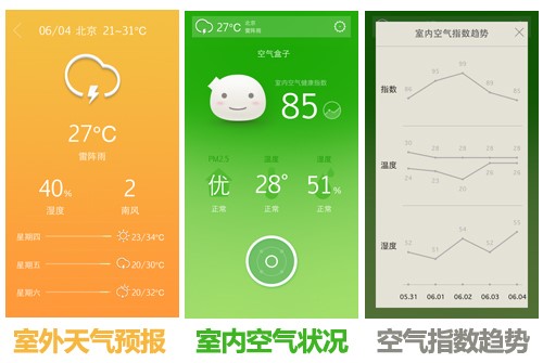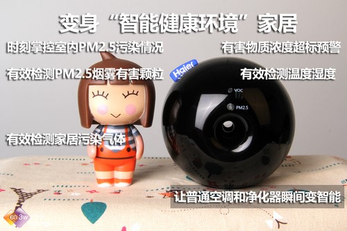 海爾空氣盒子除了可以將家中的空調、空氣凈化器等多款家電進行互聯和控制外,還可以智能檢測空氣質量,及時的告知用戶天氣狀況等人性化同時更貼心的服務,讓 消費者通過這個“空氣盒子”,無限、智能、便捷的聯動家中的空氣設備,讓用戶可以實現利用手機等移動終端進行遠程遙控。
