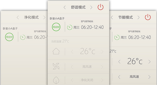 海爾空氣盒子與普通空調、空氣凈化器組合,即可變成智能家電,遠程APP智能控制一步到位。用戶可通過App對空調:開啟、關閉、設定 模式、溫度、風速進行調控。用戶可通過App對空氣凈化器:開啟、關閉,遠程操作。