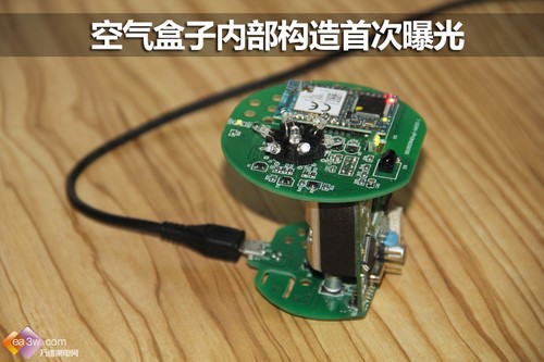 這就是空氣盒子的內部構造圖,里面有眾多的電子元件組成,并且其圓球中心位置為一個靈敏的空氣檢測裝置,能夠準確的檢測出室內空氣的健康情況,為用戶及時的推送相關信息。在空氣盒子的最上端,有著多個敏感的紅外接收發器,為其控制空調以及空氣凈化器提供充足條件。